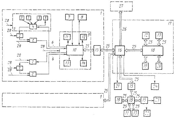 1 - энергоблок атомной станции; 2 - станция сбора данных радиационного контроля; 3 - блоки и устройства детектирования ионизирующих излучений; 4 - периферийное устройство накопления и обработки информации; 5 - местное устройство отображения информации; 6 - последовательный канал передачи данных; 7 - станция сбора данных индивидуального дозиметрического контроля; 8 - станция сбора данных загрязненности населения; 9 - рабочее место оператора-дозиметриста; 10 - пульт; 11 - черно-белый дисплей; 12 - цветной дисплей; 13 - знакопечатающее устройство; 14 - записывающее устройство; 15 - блок связи; 16 - центральный пульт; 17 - центральная операторская контроля радиационной безопасности АС (КРБ АС); 18 - электронно-вычислительная машина (ЭВМ); 19 - накопитель на магнитном диске; 20 - накопитель на магнитной ленте; 21 - станция ввода данных контролируемых проб; 22 - станция сбора данных радиационного контроля внешней среды; 23 - станция сбора метеорологических данных; 24 - станция сбора данных о загрязненности транспорта; 25 - каналы обмена информацией; 26 - связь с автоматизированной системой управления технологическими процессами АС (АСУ ТП АС); 27 - АСУ ТП АС; 28 - вводы независимого энергопитания ИНФОРМАЦИОННЫЕ ДАННЫЕ1. ИСПОЛНИТЕЛИ В.А. Казанкин; В.М. Зимина 2. УТВЕРЖДЕН И ВВЕДЕН В ДЕЙСТВИЕ Постановлением Государственного комитета СССР по стандартам от 26.10.87 № 4003 3. Срок проверки - 1992 г.; периодичность проверки - 5 лет. 4. Стандарт соответствует стандартам МЭК: МЭК 231 - в части контроля плотности потока нейтронов и обеспечения аппаратуры энергопитанием; МЭК 232 - в части применения измеряемых параметров и назначения аппаратуры; МЭК 768 - в части организации технического обеспечения радиационного контроля на АС. 5. ВЗАМЕН ГОСТ 21766-76, ГОСТ 23766-79 6. Стандарт содержит все требования СТ СЭВ 5738-86. 7. ССЫЛОЧНЫЕ НОРМАТИВНО-ТЕХНИЧЕСКИЕ ДОКУМЕНТЫ