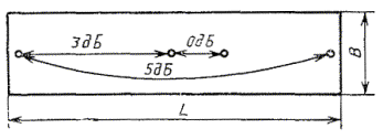 2.2.3.2. Случайная ошибка DLAV при постоянном шуме. В качестве случайной ошибки при постоянном шуме следует указать DLAV = 2 дБ. 3. ПРОТОКОЛ ИСПЫТАНИЙРезультаты, полученные при определении эквивалентного уровня звука А, должны быть представлены в виде протокола испытаний по СТ СЭВ 541-77. Дополнительно указывают погрешность измерений. ПРИЛОЖЕНИЕ 1Справочное ПРЕДВАРИТЕЛЬНЫЙ РАСЧЕТ ЭКВИВАЛЕНТНОГО УРОВНЯ ЗВУКА А НА РАБОЧИХ МЕСТАХ1. Общие положения При проектировании рабочих мест в вычислительных центрах или конторских помещениях следует предварительно рассчитать эквивалентный уровень звука А на рабочих местах, если известны шумовые характеристики отдельных устройств. При этом необходимо, чтобы соблюдались следующие условия: 1) рабочие места должны быть расположены в помещении на одном уровне с источниками шума; 2) источники шума не должны иметь определенного направления шумоизлучения; 3) частотный спектр излучаемого шума не должен содержать тональных составляющих, определяющих корректированный уровень звуковой мощности А. Основой для расчетов являются корректированные уровни звуковой мощности А источников шума, Если рассматриваемое рабочее место находится в ближней сфере источника шума, то необходимо знать уровень звука A этого источника на расстоянии удаленности оператора. Частотно-зависимые акустические параметры следует определять для среднеоктавной частоты 500 Гц. В результате расчета определяют эквивалентный уровень звука А на рабочем месте, который необходимо сравнить с установленными в табл. 1 допустимыми значениями. При расчетах различают кубические помещения, помещения с низким потолком и удаленные помещения (табл. 3, где L, В и H - соответственно длина, ширина и высота помещения). Таблица 3