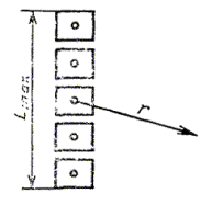 Определение DL0 для кубических помещений Определение DLr для помещений с низким потолком Определение расстояния r в удлиненных помещениях Определение DLr для удлиненных помещений для В » 2H Определение DLR для различного размещения источников шума и рабочих мест при отражении звука от поверхности стен помещения с низким потолком (aстены » 0,1) (при (aстены > 0,7 для любого случая размещения DLR = 0 дБ) О - источник шума или рабочее место Определение DLR для различных случаев размещения источников шума и рабочих мест при отражении звука от поверхности торцевых стен удлиненного помещения (aстены » 0,1) (при (aстены > 0,7 для любого случая размещения DLR = 0 дБ) О - источник шума или рабочее место 3.3. Расчет уровня звукового давления на рабочем месте в случае расположения в одну линию источников с уровнем звукового давления L(rv)A, дБ. Для расположенных в одну линию источников шума примерно одинаковой мощности в количестве п штук, например ряда накопителей на магнитной ленте или накопителей на сменных магнитных дисках расчет (L(rv)А) проводят путем учета еще одной поправки DLn по формуле