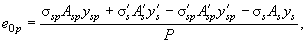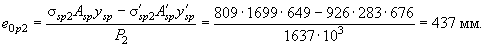 Напряжения ssp с учетом всех потерь равны: для арматуры S ssp2 = ssp1 - s8 - s9 = 945 - 35 - 101 = 809 МПа; для арматуры S' s¢sp2 = s¢sp1 - s8 - s9 = 976 - 35 - 15,4 = 926 МПа. Определим усилие обжатия с учетом всех потерь P2 и его эксцентриситет e0p2: P2 = ssp2Asp + s¢sp2Asp = 809×1699 + 926×283 = 1637×103 Н = 1637 кН;
