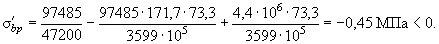 Напряжение s¢bp на уровне арматуры S' (т.е. при y = y's = 73,3 мм) равно: