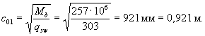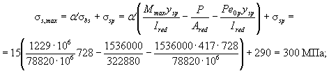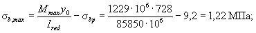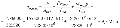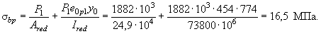 Определим по формуле (10) максимальное сжимающее напряжение бетона от действия силы P1 без учета собственного веса, принимая y = y0 = 774 мм: