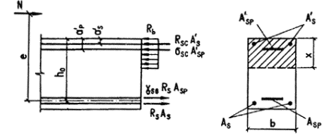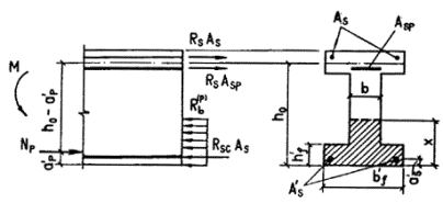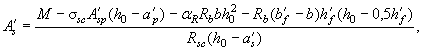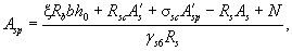 am = x(1 - 0,5x); z = 1 - 0,5x. 3.12. Требуемая площадь сечения сжатой ненапрягаемой арматуры при известной площади напрягаемой арматуры A¢sp (например, принятой из условия ограничения начальных трещин) определяется по формуле Если принятая площадь сечения сжатой ненапрягаемой арматуры близка к ее значению A's, вычисленному по формуле (32), то требуемая площадь сечения напрягаемой арматуры растянутой зоны определяется по формуле