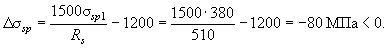 Поскольку натяжение арматуры класса А-IV механическое, определим значение Dssp согласно п. 3.6, принимая ssp1 = 380 МПа: