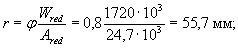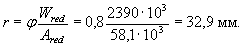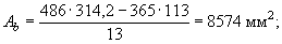 Ared = 510×200 + 140(1246-200) + 15×942 + 15×4021 = 322880 мм2;