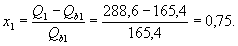 следовательно, расчет продолжаем по формулам косого изгиба. Определим значение x1 по формуле (53), вычислив: