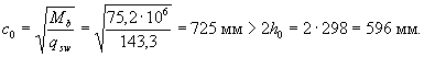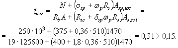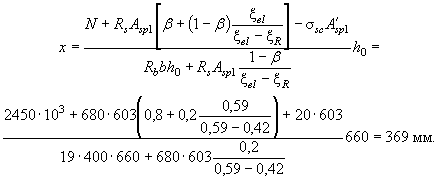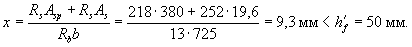 Поскольку x2 мало отличается от x1, окончательно принимаем x = x2 = 0,93, т.е. x = xh0 = 0,93×1340 = 1246 мм.