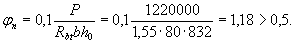 т.е. выносливость сжатого бетона обеспечена.