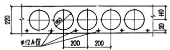 где ssp1i - определяется при gsp < 1,0 (см. п. 1.18) с учетом потерь по поз. 3 - 5 табл. 4; ssc,u, w - см. п. 3.6; при иных, кроме указанных выше, способах натяжения арматуры классов А-IV, А-V и А-VI, а также для арматуры классов В-II, Вр-II, К-7 и К-19 при любых способах натяжения b = 0,8. Напряжения ssi, определенные по формуле (64), вводятся в расчет со своими знаками; при этом напряжения со знаком «плюс» означают растягивающие напряжения, а напряжения со знаком «минус» - сжимающие. Напряжения ssi принимаются не менее - Rsc (максимальное сжимающее напряжение) и не менее ssp - ssc,u. Напряжение sspi в формуле (64) определяется при коэффициенте gsp < 1,0, если рассматриваемый стержень расположен в растянутой зоне, и gsp > 1,0, если стержень расположен в сжатой зоне. Для определения положения границы сжатой зоны при косом изгибе (т.е. когда плоскость действия момента не перпендикулярна прямой, ограничивающей сжатую зону) кроме использования формул (61) - (64) требуется соблюдение условия параллельности плоскости действия моментов внешних и внутренних сил. Если в сечении можно выявить характерную ось (например, ось симметрии или ось ребра Г-образного сечения), то при косом изгибе расчет рекомендуется производить в следующем порядке. 1. Провести две оси x и y соответственно параллельно и перпендикулярно указанной характерной оси через центр тяжести сечения наиболее растянутого стержня. 2. Подобрать последовательными приближениями положение прямой, ограничивающей сжатую зону, при постоянном угле ее наклона q так, чтобы удовлетворялось равенство (61) после подстановки в него значений ssi, определенных по формулам (62) - (64); при этом угол q в первом приближении принять равным углу наклона нулевой линии, определенному как для упругого материала. 3. Определить моменты внутренних сил в плоскости осей х и у соответственно Mx,u и My,u. 4. Если оба момента оказываются больше или меньше соответствующих составляющих внешнего момента (Mx и My), то прочность сечения считается соответственно обеспеченной или необеспеченной. 5. Если один из этих моментов (например, My,u) меньше соответствующей составляющей внешнего момента (My), а другой момент больше составляющей внешнего момента (т.е. Mx,u > Ms), то следует задаться другим углом q (большим, чем ранее принятый) и снова выполнить аналогичный расчет. Примеры расчетаПример 10. Дано: железобетонная шпала с размерами расчетного поперечного сечения по оси рельса - по черт. 11; бетон тяжелый класса В40 (Rb = 24 МПа при gb2 = 1,1); арматура из проволоки класса Вр-II, диаметром 3 мм (Rs = 1215 МПа); предварительное напряжение арматуры при gsp < 1 ssp = 975 МПа; изгибающий момент в расчетном сечении M = 26 кН×м. Требуется проверить шпалу на прочность. Черт. 11. К примеру расчета 10 Расчет. В связи с распределенным характером расположения арматуры по сечению расчет производим по общему случаю согласно п. 3.18. По формуле (21) п. 3.6 определяем значения xR и xel. Для этого вычислим w = 0,85 - 0,008Rb = 0,85 - 0,008×24 = 0,658. Поскольку арматура проволочная, принимаем Dssp = 0 и b = 0,8, ssc,u = 400 МПа (так как gb2 = 1,1). Значение ssR равно: при вычислении xR ssR = Rs + 400 - ssp = 1215 + 400 - 975 = 640 МПа; при вычислении xel ssR = bRs - ssp = 0,8×1215 - 975 = -3 МПа. Отсюда имеем: