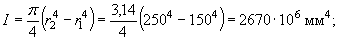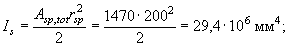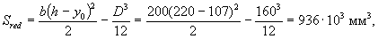 Sred = 510×200(672 - 200/2) + 140(672 - 200)0,5 + 6,55×942(672 - 40) = 77,84×106 мм3.