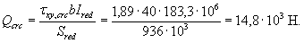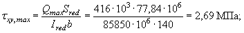 Поскольку сечение II-II расположено от опоры и от первого груза на расстоянии 0,95 м » 0,7h, принимаем напряжение sу = sy,loc = 0.