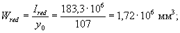 Ired = 510·2003/12 + 510·200(1340 - 728 - 100)2 + 140·10463/12 + 140×1046×1112 + 15×942×5722 + 15×4021×7282 = 78820×106 мм4;