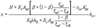 при xi > xel,i Для продольной арматуры с физическим пределом текучести (см. п. 2.16) при xi > xRi используется только уравнение (64). Ab - площадь сжатой зоны бетона; Asi - площадь сечения i-го стержня продольной арматуры; xi - относительная высота сжатой зоны, равная: