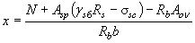Затем определим сумму усилий во всех рядах проволок SssiAsi, где Asi принимается равной площади сечения арматуры в одном i-м ряду, параллельном нейтральной оси. В первом приближении значение x определим из уравнения (61), принимая среднее напряжение в арматуре равным 0,9Rs = 0,9×1215 = 1093 МПа; SAsi = 367 мм2 (52 Æ 3), отсюда Поскольку сжатая зона имеет трапециевидную форму, высоту сжатой зоны x определим из уравнения (см. черт. 11)