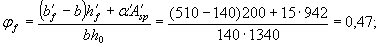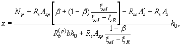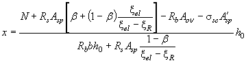 Относительную высоту сжатой зоны x определяем из уравнения (156). Для этого находим величины jf, esp, es,tot, ma' и df.