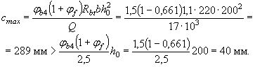 Поскольку sb,max = 1,22 МПа > Rbt = 1,2 МПа, т.е. даже без учета коэффициента gb1 условие (182) не выполняется, трещины в растянутой зоне образуются.