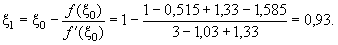 Во втором приближении, принимая x0 = x1 = 0,93, получим