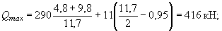 Qmin = 11(11,7/2 - 0,95) = 54 кН.