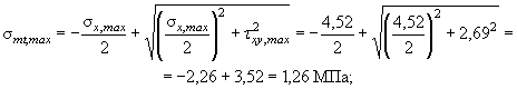 Определяем по формуле (185) наибольшие и наименьшие главные растягивающие напряжения: