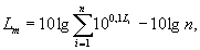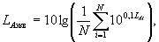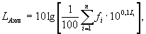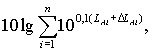 где Li - i-й из усредненных уровней звука, дБА (октавных уровней звукового давления, дБ); i = 1, 2 … n;