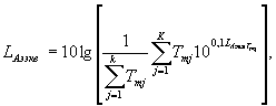 где Lн - нижний предел интервала уровней звука, дБА; Lв - верхний предел интервала уровней звука, дБА. 7. Эквивалентный (по энергии) уровень звука LAэквT за время оценки шума Т - величина, определяемая по формуле