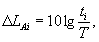 где Т - длительность полного цикла характерного действия прерывистого шума, мин; Т1 - длительность интервалов, в течение которых уровни звука остаются постоянными, или пауз между ними. Полученные поправки заносят в графу 4 формы 2 приложения 5. (Измененная редакция, Изм. № 1). 2. Вычисляют скорректированные уровни звука (LAi + DLAi), дБА, складывая измеренные уровни звука с полученными поправками, и заносят их в графу 5 формы 2 приложения 5. 3. Определяют суммарный уровень