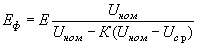 где Е - минимальная, средняя или цилиндрическая освещенности, определенные по 7.1.1 - 7.1.4, лк; Uном - номинальное напряжение сети, В; К - коэффициент, равный 4 для ламп накаливания (в том числе галогенных), 3 - для индуктивного балластного сопротивления и для ламп ДРЛ, 1 - для люминесцентных ламп при использовании емкостного балластного сопротивления; Uср - среднее значение напряжения, определяемое по формуле