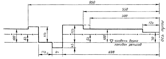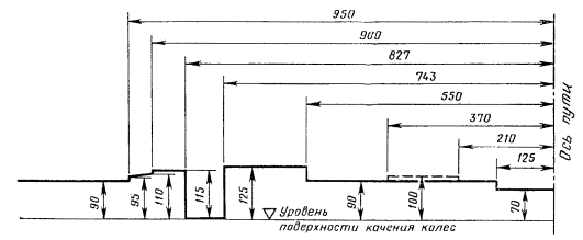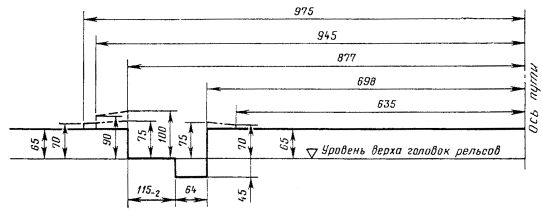 г) Для подвижного состава, проходящего по всем путям железных дорог Союза ССР колеи 1520 (1524) мм, включая пути сортировочных горок, оборудованные вагонными замедлителями при любом их положении, и пути, оборудованные устройством для надвига вагонов (см. черт. 6).