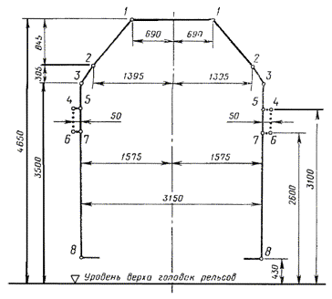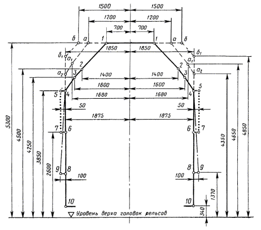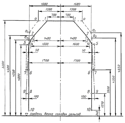 ¾¾о¾¾ верхнее очертание габарита приближения строений; - - - - - - - - верхнее очертание габарита подвижного состава;