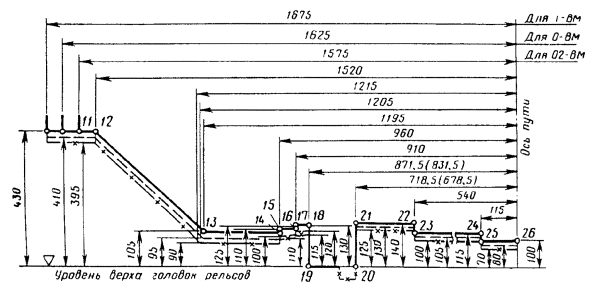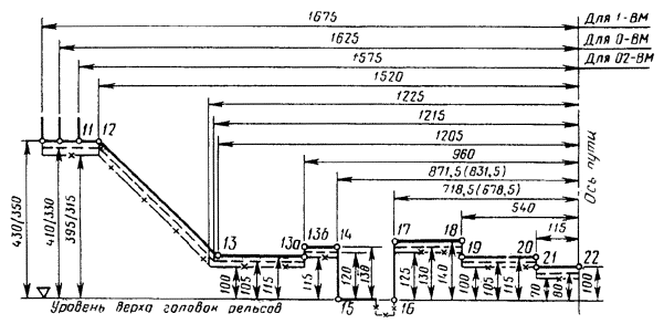 для габаритов 0-ВМ, 02-ВМ, 03-ВМ и нижней части габарита 1-ВМ