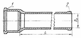 1 - раструб типа I по ГОСТ 6942.2-80; 2 - хвостовик по ГОСТ 6942.2-80 Размеры в мм