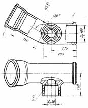 Постановлением Государственного комитета СССР по делам строительства от 4 сентября 1980 г. №137 срок введения установлен с 01.01 1982 г. Несоблюдение стандарта преследуется по закону 1. Настоящий стандарт распространяется на приборные отводы-тройники к чугунным трубам, предназначенным для систем внутренней канализации зданий. 2. Приборные отводы-тройники изготовляют в правом (код ОКП 49 2522 2711) и левом (код ОКП 49 2522 2712) исполнениях. 3. Конструкция и размеры приборных отводов-тройников должны соответствовать указанным на чертеже.