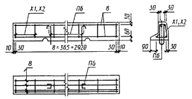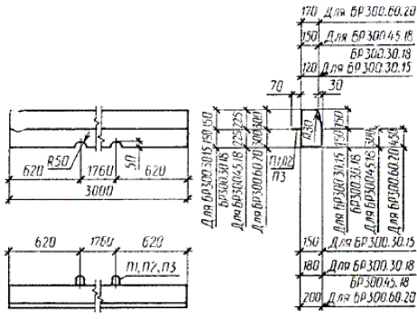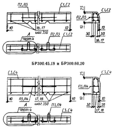 ПРИЛОЖЕНИЕ 2Обязательное Армирование камней1. Армирование камней длиной 3 м приведено на черт. 12, 14, 15, 17, a камней длиной 6 м - на черт. 13 и 16; детали армирования - на черт. 18. 2. Арматурные изделия приведены на черт. 19-24 и в табл. 9. 3. Спецификация арматурных изделий, расход стали на один камень и на одно арматурное изделие приведены в табл. 10 и 12. Армирование камней марок БР300.30.15, ВР300.30.18, БР300.45.18 и БР300.60.20 БР300.30.15 И БР300.30.18 БР300.45.18 И БР300.60.20