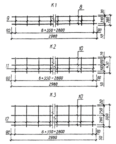 Черт. 22 Арматурные каркасы К4, К5 и К6