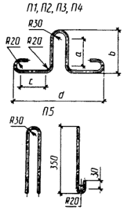 Черт. 31 Монтажные петли П1 - П5 Черт. 32 Таблица 13 мм