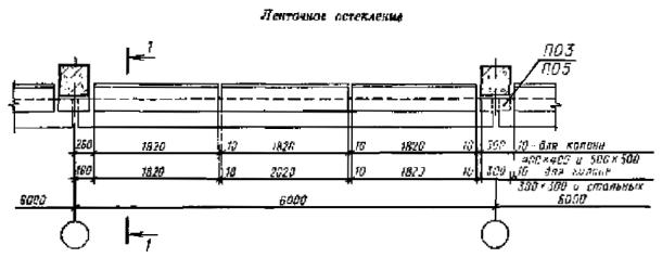 1. Заполнение проемов условно не показано. 2. Сечение 1-1 см. на черт 9 б) Стены из трехслойных металлических панелей с утеплителем из пенополиуретана с опиранием их на цокольные железобетонные панели при ширине оконного проема: