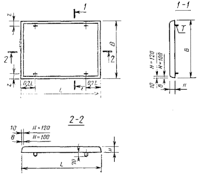 2.9.2. Трещины на поверхностях плит не допускаются. Местные поверхностные усадочные и технологические трещины шириной не более 0,1 мм и длиной не более 50 мм не являются основанием для их браковки. При этом количество трещин не должно быть более пяти на 1,5 м2 поверхности плиты. 3. ПРАВИЛА ПРИЕМКИ3.1. Приемку плит следует производить партиями в соответствии с требованиями ГОСТ 13015.1-81 и настоящего стандарта. 3.2. Приемку плит по показателям прочности бетона (классу бетона по прочности на сжатие, отпускной прочности), соответствия арматурных изделий требованиям ГОСТ 19231.1-83, прочности сварных соединений, толщины защитного слоя бетона до арматуры, точности геометрических параметров, качества поверхностей следует проводить по результатам приемо-сдаточных испытаний и контроля. 3.3. Приемку плит по показателям их прочности и трещиностойкости, а также по морозостойкости, водонепроницаемости, водопоглощению бетона следует проводить по результатам периодических испытаний. 3.4. В случаях, если при проверке будет установлено, что отпускная прочность бетона плит не удовлетворяет требованиям, приведенным в п. 2.7, поставка плит потребителю не должна производиться до достижения бетоном плит прочности, соответствующей классу бетона по прочности на сжатие. 3.5. При приемке плит по показателям точности геометрических параметров, толщины защитного слоя бетона до арматуры и качества поверхностей, контролируемым путем измерений, следует применять выборочный одноступенчатый контроль. 4. МЕТОДЫ КОНТРОЛЯ И ИСПЫТАНИЙ4.1. Испытание плит по прочности и трещиностойкости 4.1.1. Испытание плит по прочности и трещиностойкости следует проводить нагружением по ГОСТ 8829-77 с учетом требований настоящего стандарта. 4.1.2. Испытание плит нагружением проводят после достижения бетоном плит прочности, соответствующей классу бетона по прочности на сжатие. Допускается использовать для испытаний плиты, имеющие раковины, местные наплывы и околы, размеры которых превышают допускаемые настоящим стандартом не более чем в два раза, и другие дефекты, не влияющие на прочность плит. 4.1.3. Схемы испытаний и загружения плит следует принимать по черт. 4 и табл. 3, а значения контрольных нагрузок - по табл. 4. Таблица 3 мм