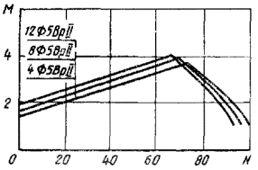 3. При проверке свай по прочности и образованию трещин для свай, армированных проволокой и канатами, и по прочности и раскрытию трещин до ат.кр = 0,2 мм для свай, армированных стержневой арматурой, на внецентренное сжатие от эксплуатационных нагрузок рекомендуется пользоваться графиками.
