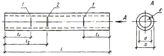 полосы - при подъеме на копер на расстоянии l2 от торца. Отметки наносят