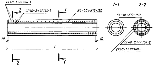 арматурой и устанавливает конструкцию и размеры полых свай круглого сечения,