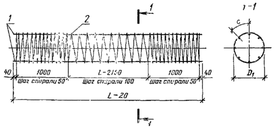 концов каркаса спираль должна быть приварена в каждом пересечении к продольным