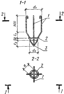 транспортировании (одинарная полоса); 2 – место строповки при подъеме на копер