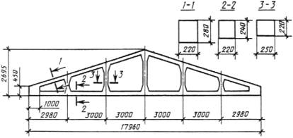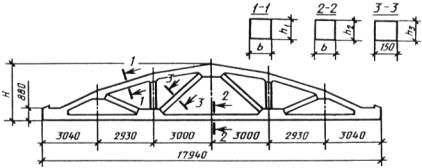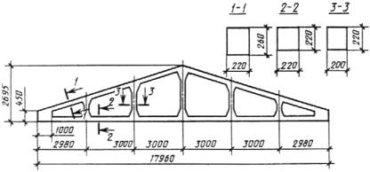 Черт. 16 Поперечные сечения элементов ферм типоразмеров 1ФПС12, 2ФПС12 Черт. 17 Фермы типоразмеров 1ФПМ12, 1ФПН12 (серия 1.463.1-4/87) Черт. 18 Фермы типоразмеров 2ФПМ12, 2ФПН12 (серия 1.463.1-4/87)