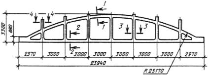 Черт. 2 Фермы типоразмеров 1ФС24 ...4ФС24 (серия 1.463.1-16) Таблица 3