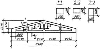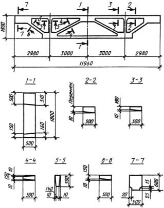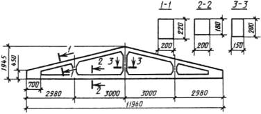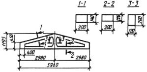 Черт. 19 Поперечные сечения элементов ферм типоразмеров 1ФПМ12, 2ФПМ12, 1ФПН12, 2ФПН12 Черт. 20 Ферма типоразмера ФП12 (серия 1.463.1-15) Черт. 21