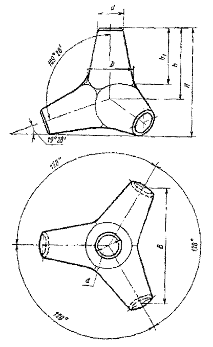 Постановлением Государственного комитета Совета Министров СССР по делам строительства от 18 декабря 1974 г. № 244 срок введения установлен с 01.01. 1976 г. Настоящий стандарт распространяется на фигурные бетонные блоки - тетраподы, предназначаемые для берегозащитных и оградительных сооружений. 1. ФОРМА, МАРКИ И ОСНОВНЫЕ РАЗМЕРЫ1.1. Форма, марки и основные размеры тетраподов должны соответствовать указанным на чертеже и в табл. 1. Таблица 1