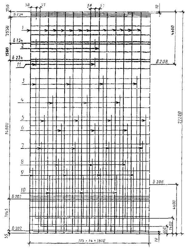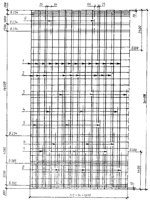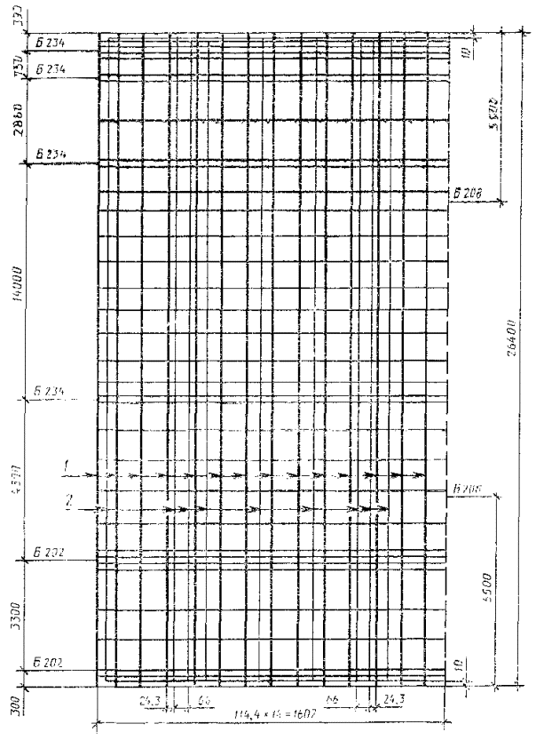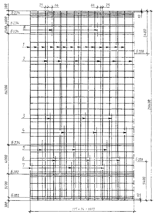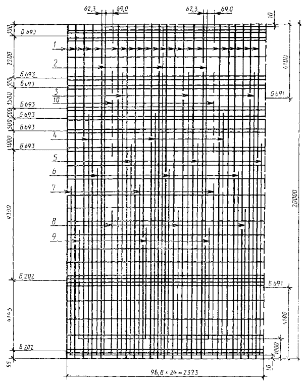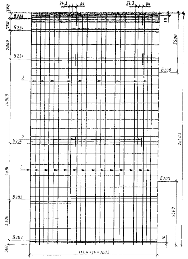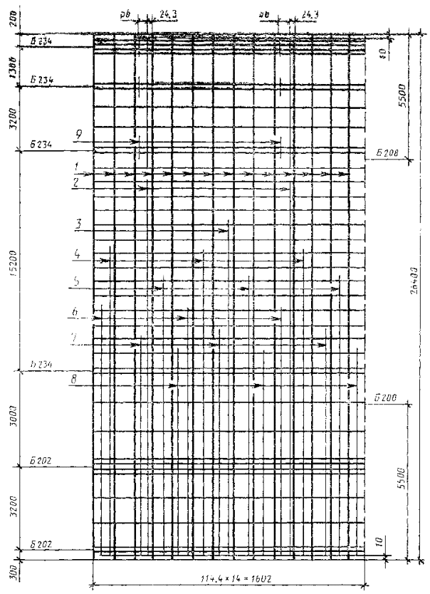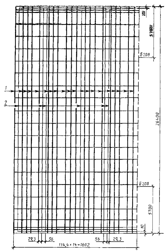 Постановлением Государственного комитета СССР по делам строительства от 25 октября 1984 г. № 180 срок введения установлен с 01.01.86 1. Настоящий стандарт распространяется на железобетонные предварительно напряженные цилиндрические стойки кольцевого сечения, изготовляемые методом центрифугирования из тяжелого бетона и предназначенные для опор линий электропередачи напряжением 35-750 кВ, и устанавливает конструкцию указанных стоек. Стойки предназначены для применения: при расчетной температуре наружного воздуха (температуре наружного воздуха наиболее холодной пятидневки района строительства согласно СНиП 2.01.01-82) до минус 55°С включительно; в I-VII районах по давлению ветра и в I-V районах по толщине стенки гололеда согласно СНиП 2.01.07-85; при сейсмичности площадки строительства до 9 баллов включительно. Стойки, предназначенные для эксплуатации в среде с агрессивной степенью воздействия на железобетонные конструкции, должны удовлетворять дополнительным требованиям, установленным проектной документацией согласно СНиП 2.03.11-85 и указанным в заказе на изготовление стоек. 2. Форма и основные параметры стоек - по ГОСТ 22687.0-85. 3. Технические показатели стоек приведены в табл. 1. 4. Стойки должны удовлетворять всем требованиям ГОСТ 22687.0-85 и настоящего стандарта. 5. Конструкция и размеры стоек должны соответствовать указанным на черт. 1. 6. Показатели расхода стали на стойку приведены в табл. 2. 7. Арматурные каркасы стоек и расположение закладных изделий в стойках должны соответствовать указанным на черт. 2-20. Расположение напрягаемой арматуры должно соответствовать приведенному на черт. 21-22. Примечание. На чертежах арматурных каркасов напрягаемая арматура обозначена цифрой 1 и выделена жирными линиями. 8. Стыковые соединения стержневой напрягаемой арматуры следует выполнять контактной стыковой сваркой по ГОСТ 14098-85. 9. Усилия натяжения напрягаемой арматуры, контролируемые по окончании натяжения на упоры, должны соответствовать приведенным в табл. 2. 10. Поперечное армирование стоек выполняют из спирали с переменным шагом по длине стойки. Значения шага спирали по длине стойки должны соответствовать указанным в табл. 4. 11. Спираль следует привязывать вязальной проволокой к продольной арматуре в каждом третьем пересечении. При механической намотке спирали с натяжением не менее 1 кН (0,1 тс) привязку спирали к продольной арматуре осуществляют только на концевых участках длиной 0,5 м. 12. Монтажные кольца устанавливают с шагом 1,0 м по длине стойки, а также в местах окончания стержней ненапрягаемой арматуры и в местах установки закладных изделий с обязательной приваркой колец к концам стержней ненапрягаемой арматуры, к закладным изделиям и смежным с ними стержням продольной арматуры. Таблица 1