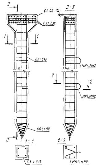 Постановлением Государственного комитета СССР по делам строительства от 12 ноября 1979 г. № 216 срок введения установлен с 01.01.1981 г. Несоблюдение стандарта преследуется по закону Настоящий стандарт распространяется на железобетонные колонны, изготовляемые из тяжелого бетона и предназначенные для опирания параболических лотков оросительных систем с расходом воды до 5 м3/ с, сооружаемых во всех климатических районах страны с сейсмичностью до 8 баллов включительно. 1. ОСНОВНЫЕ ПАРАМЕТРЫ И РАЗМЕРЫ1.1. Колонны железобетонные под параболические лотки подразделяются на два типа: СК - свая-колонна; К - стойка-колонна, заделываемая в фундамент стаканного типа. 1.2. Форма, размеры колонн и расположение монтажных петель должны соответствовать указанным на черт. 1 и 2 и в табл. Черт. 1 Черт. 2 Таблица 1 Параметры колонн под лотки Размеры в мм