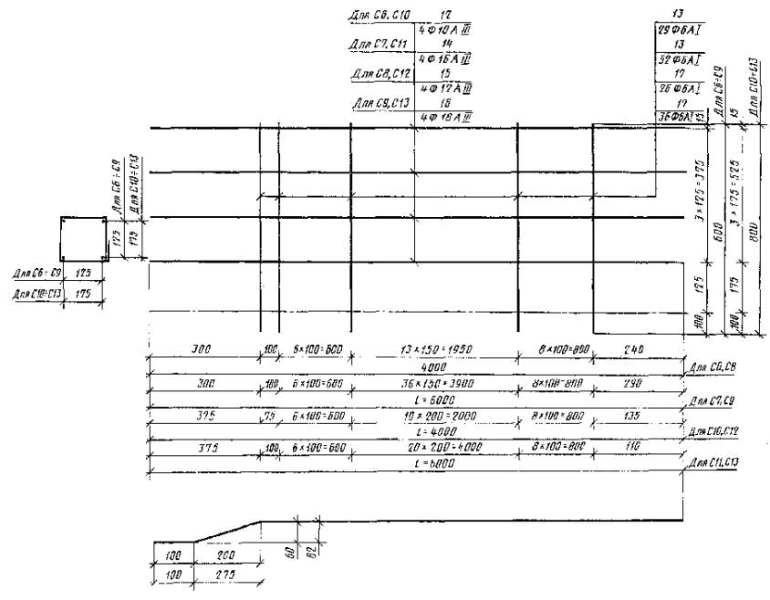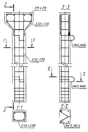 1.3. Марки колонн под лотки обозначаются в соответствии с ГОСТ 23009-78. 1.4. Колонны в зависимости от длины опирающихся на них лотков подразделяют по несущей способности на две группы: 1 - колонны под лотки длиной 6 м; 2 - колонны под лотки длиной 8 м. Пример условного обозначения колонны типа СК, длиной 4000 мм, шириной 200 мм и шириной наголовника 450 мм, 1-й по несущей способности (под лотки длиной 6 м): СК 40.2.5-1 ГОСТ 23899-791.5. При соответствующем технико-экономическом обосновании допускается изготовлять колонны с технологическим уклоном двух противоположных сторон поперечного сечения, не превышающим 1:15, без изменения площади поперечного сечения. При этом защитный слой бетона должен быть не менее 30 мм. Поперечное сечение основного каркаса колонн может иметь трапецеидальную форму, каркасы в этом случае следует выполнять по специальным чертежам, утвержденным в установленном порядке. 1.6. Технические показатели и армирование колонн следует принимать по табл. 2 и обязательному приложению 1 к настоящему стандарту. Таблица 2 Технические показатели колонн под лотки