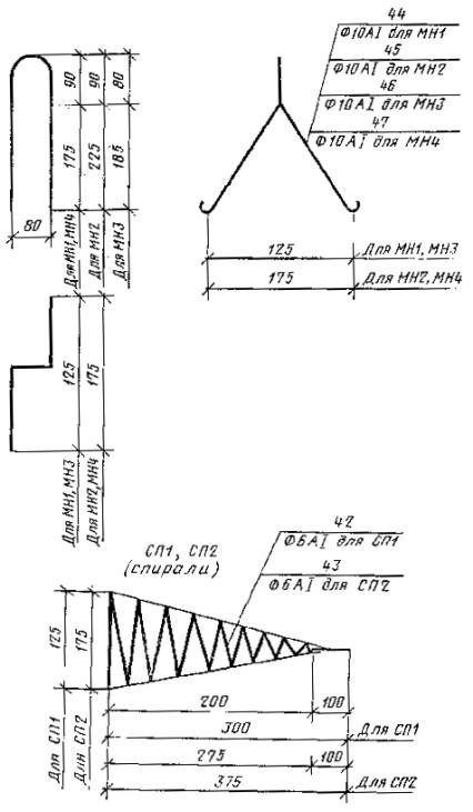 Черт. 7 Таблица 2 Спецификация и выборка стали на одно арматурное изделие и закладные детали